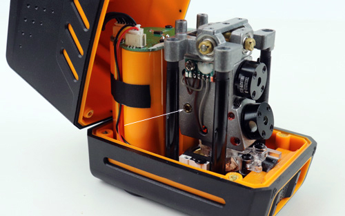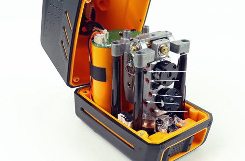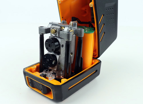 Lo smontaggio della custodia è molto semplice: svitare le 4 viti dal fondo e si avrà immediatamente accesso a tutto ciò che è si trova all’interno, mentre il dispositivo è completamente operativo. L’unica cosa è che il coperchio superiore rimane sul cavo; sulla livella laser Huepar BOX-1G, ad esempio, la copertura può essere completamente rimossa.