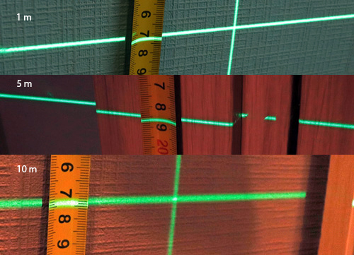 Pertanto, effettueremo misurazioni nella prima modalità, quella più luminosa, e il test dello spessore della linea a diverse distanze a livello del laser Ermenrich LT40 ha mostrato i seguenti risultati: