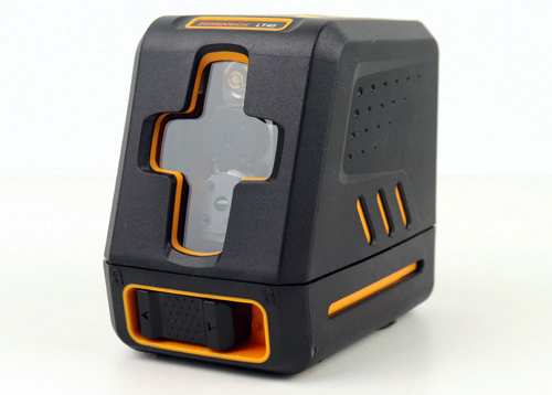 La livella laser Ermenrich LT40 ha un corpo ben costruito realizzato in buona plastica ABS, che a sua volta è completamente ricoperto da uno spesso rivestimento in gomma nera.