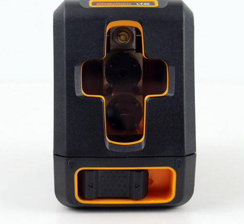 All’interno dell’Ermenrich LT40 sono presenti due moduli laser con marcature di fabbrica. Spesso nelle croci laser convenzionali è possibile vedere un modulo laser per due piani, sia verticale che orizzontale, come nel Firecore F113XG. Si tratta di una riduzione diretta dei costi di progettazione. Di conseguenza, a tali livelli è impossibile cambiare i piani individualmente, inoltre la luminosità delle linee ne risente leggermente.