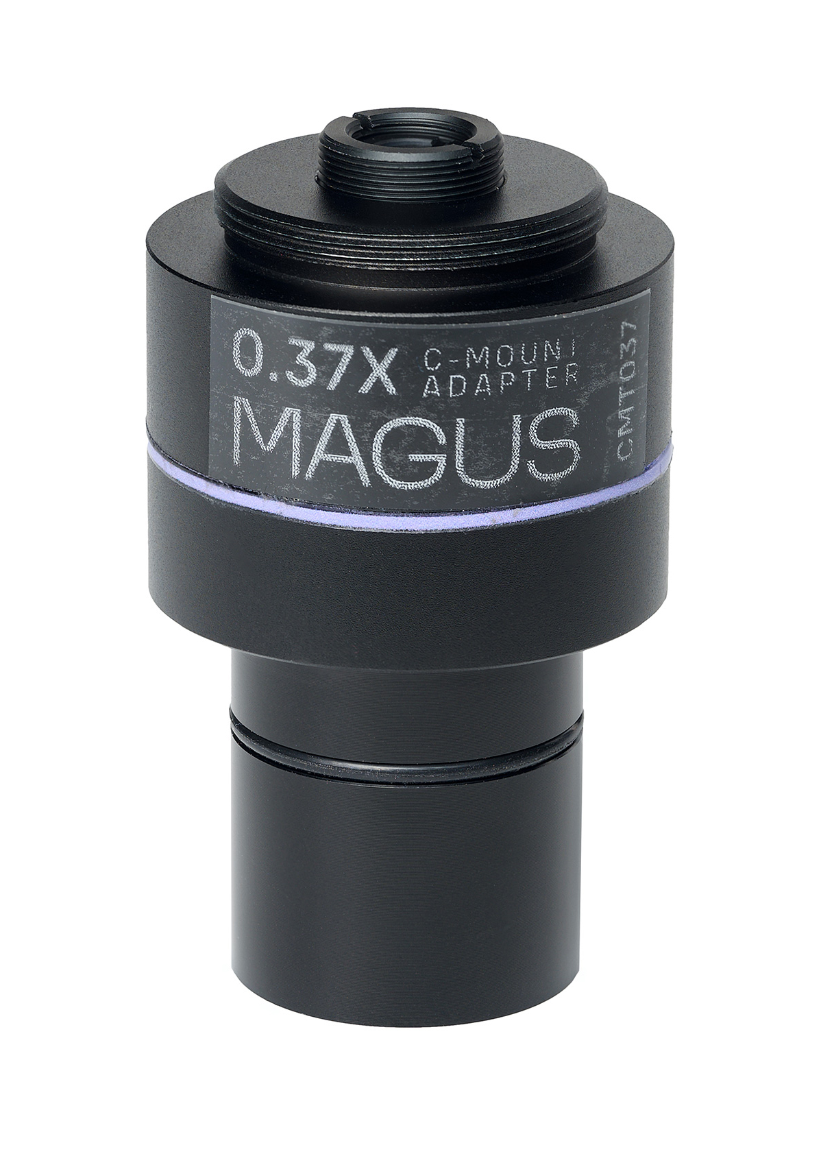 L’adattatore passo C di MAGUS è progettato per connettere una fotocamera a un microscopio. È possibile scegliere il modello giusto in base ai parametri della matrice della propria fotocamera. Il modello CMT037 ha un ingrandimento di 0,37x ed è idealmente combinato con fotocamere con una dimensione della matrice di 1/4"–1/3".
