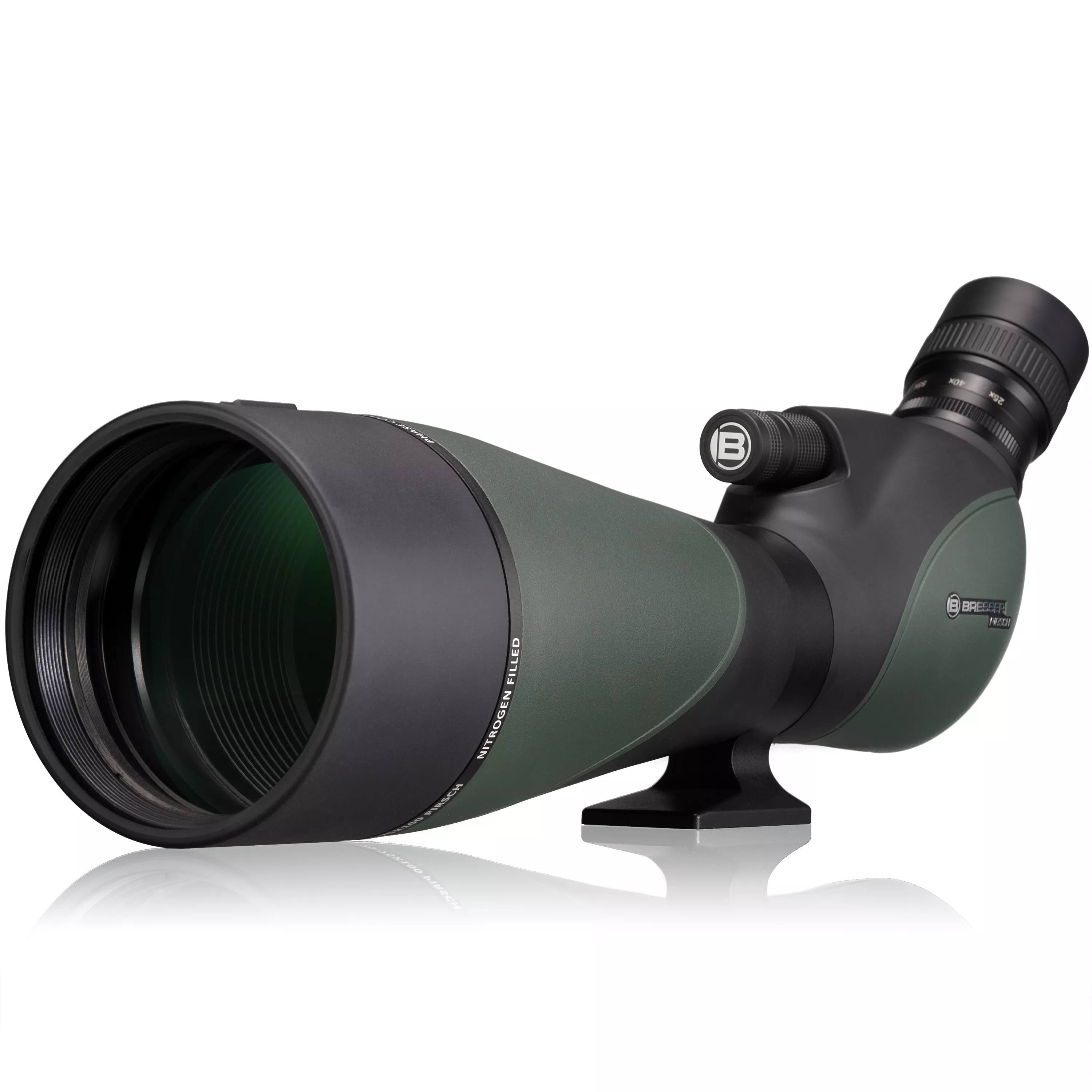 I telescopi terrestri Bresser Pirsch sono pensati innanzitutto per cacciatori e per chi ama osservare la natura. Dotati di un’ottica molto luminosa da 100 mm con trattamento antiriflesso completo, consentono ingrandimenti elevati anche al crepuscolo. Questo telescopio terrestre, inoltre, è dotato di correzione della fase e trattamento antiriflesso UR di alta qualità per immagini più luminose e con un miglior contrasto. Grazie al corpo impermeabile e riempito con gas inerte e al rivestimento antiriflesso, gli amanti della natura possono distinguere ad esempio varie specie di volatili con qualsiasi condizione meteo e i cacciatori possono individuare le prede anche a grande distanza.