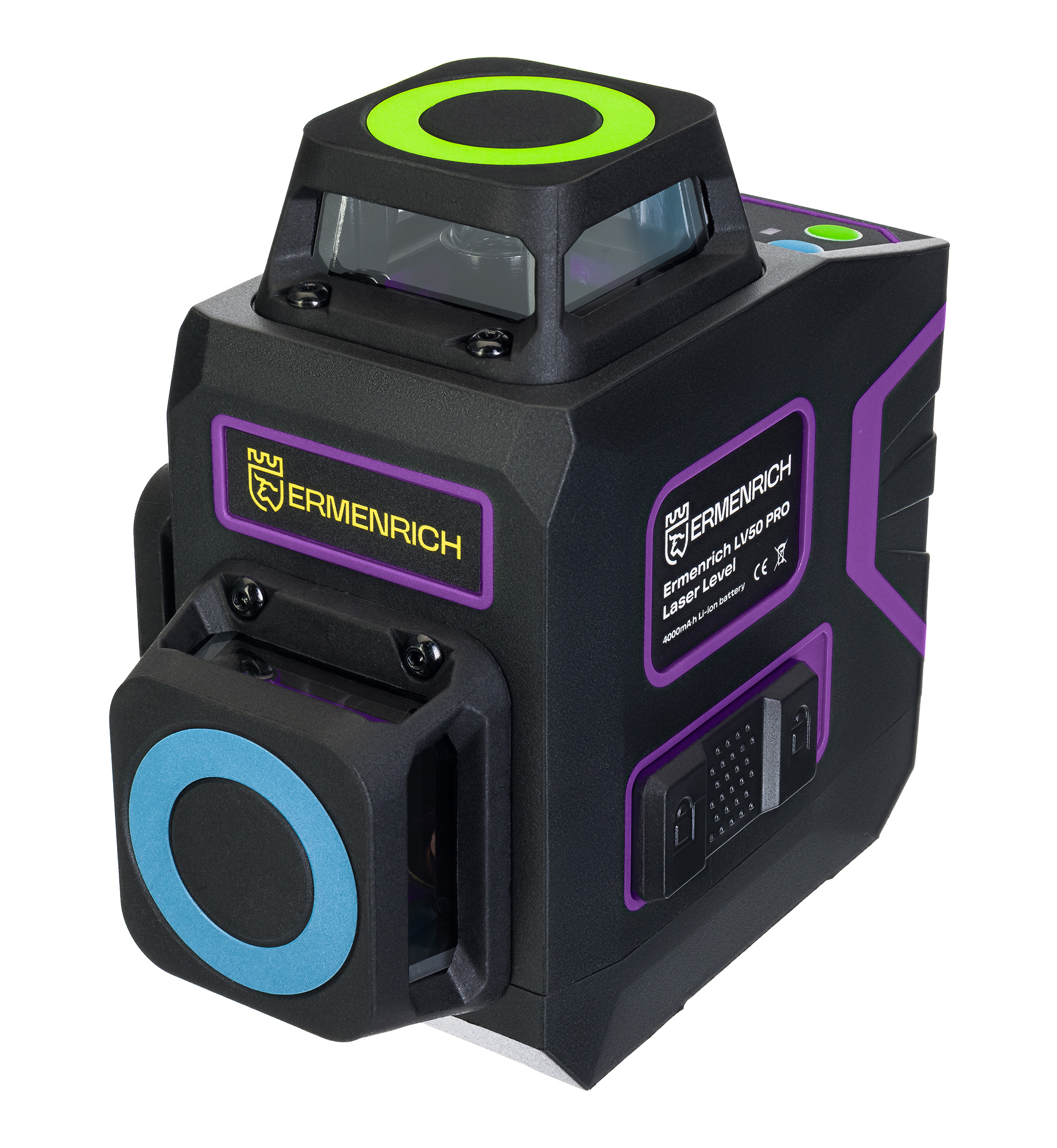 La livella laser Ermenrich PRO LV50 è dotata di compensatore che riduce le vibrazioni e permette allo strumento di allineare automaticamente il piano laser. Se i desidera massimizzare l’accuratezza, è possibile utilizzare la targhetta bersaglio (che riflette il raggio laser) inclusa nella confezione. La batteria al litio ricaricabile garantisce una lunga autonomia, mentre il telecomando è alimentato da batterie standard. Il laser ha quattro livelli di luminosità disponibili, per adattarsi facilmente a qualsiasi condizione di luminosità nell’ambiente di lavoro. La livella laser è progettata per funzionare in un ampio intervallo di temperature, persino sottozero, ed è resistente all’infiltrazione di polveri e agli schizzi d’acqua.