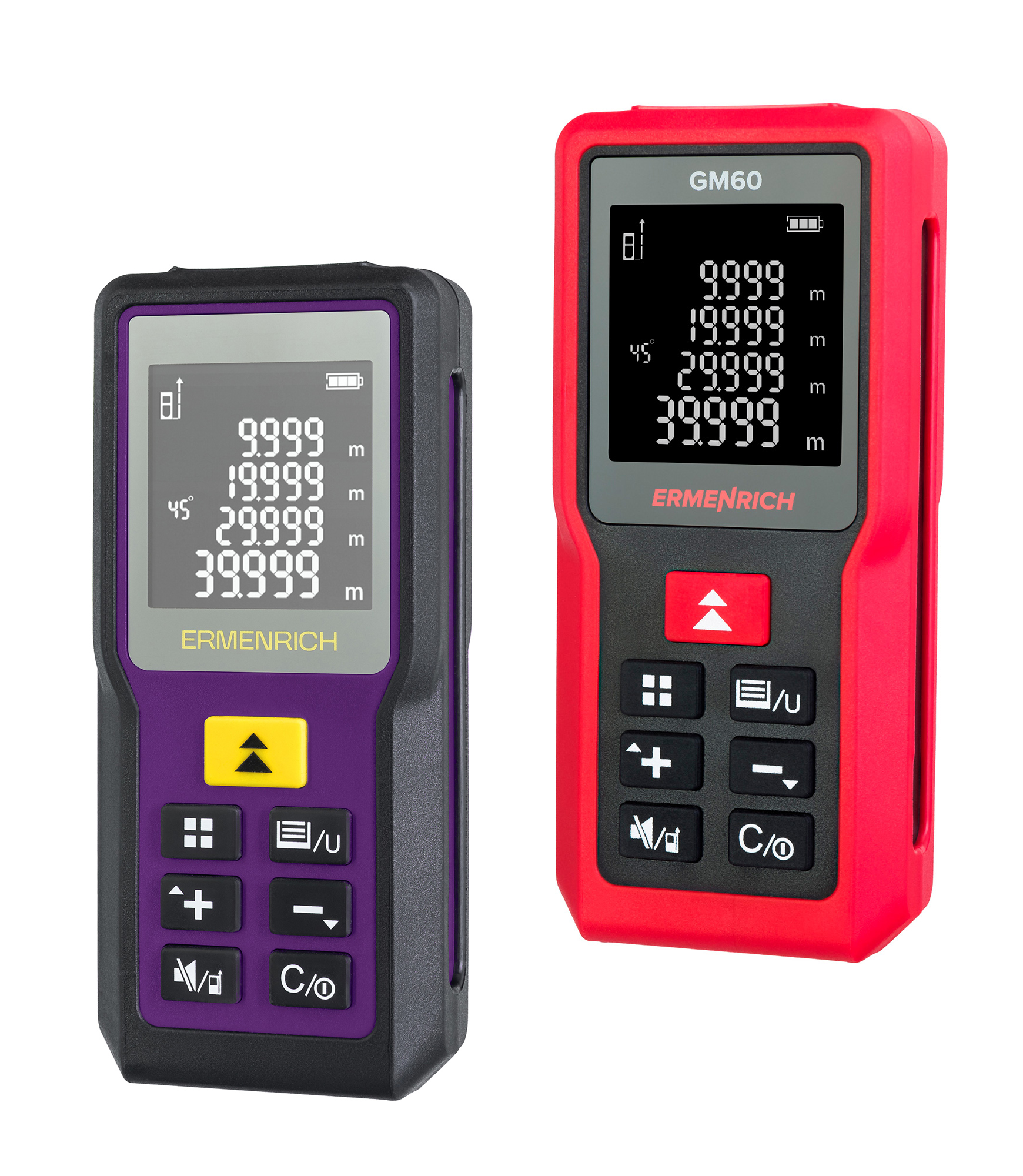L’Ermenrich Reel PRO GM60 è facile da usare grazie al suo design compatto e al grande display a 4 righe. Sono disponibili sia la modalità di misura singola della distanza che quella di misura continua, nonché la scelta tra varie unità di misura. I professionisti sapranno apprezzare la modalità silenziosa, che consente di lavorare in tutta tranquillità disattivando i segnali acustici. Lo strumento è alimentato da 2 batterie AAA standard, un set di batterie garantisce oltre 5.000 misure. Per risparmiare energia, è presente una funzione di spegnimento automatico sia per il raggio laser che per l’intero strumento. La cronologia delle misure effettuate dallo strumento può memorizzare una grande quantità di dati, fino a 100 gruppi di valori.