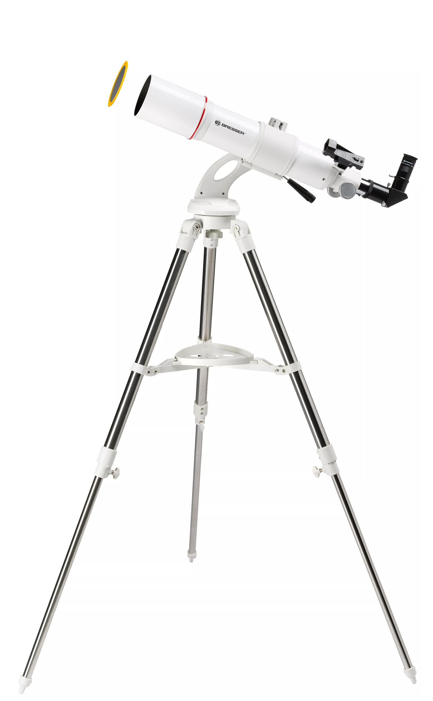 La nuova montatura Bresser NANO AZ è stata sviluppata per garantire un utilizzo semplice e rapido: è facile come utilizzare un treppiede da macchina fotografica, ma molto più stabile. La slitta GP standard da 44 mm permette inoltre di utilizzare altri tubi ottici, come ad esempio i modelli AR-90s, AR-102s, AR-102xs ed ED-80 APO. Ovviamente si possono usare anche telescopi Newton e Maksutov molto leggeri e corti, come i modelli NT-114/500, MC-90, MC-102 e MC-127, a condizione che non abbiano un peso di molto superiore a 3,5 kg. Il treppiede da campo in acciaio inox, stabile e regolabile in altezza, è la base ideale per il telescopio Bresser NANO AZ.